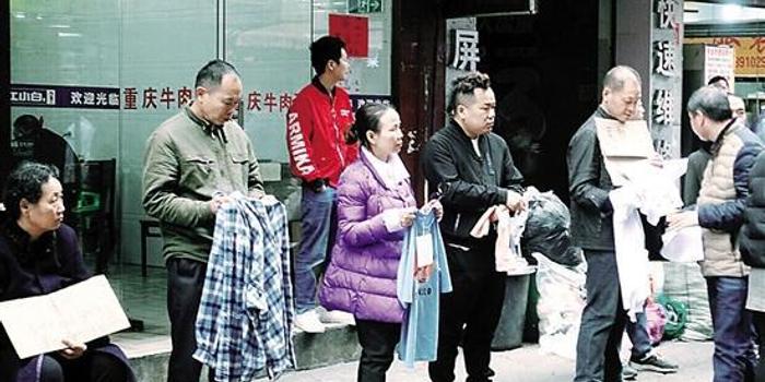 25日,记者来到鹭江村。由于毗邻中大布匹市场,鹭江村的主要产业是制衣业,村中大小制衣厂(作坊)无数。走入鹭江村主干道,便可看见沿街几百米不少人手举一两件衣服,偶有行人经过时会停下触摸布料,并低声洽谈——这可不是在买卖衣服,而是在招工。