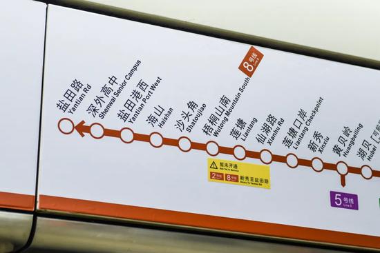 其中,既有2号线“往新秀方向”的信息均将改为“往8号线盐田路方向”,“往赤湾方向”的信息则保持不变。