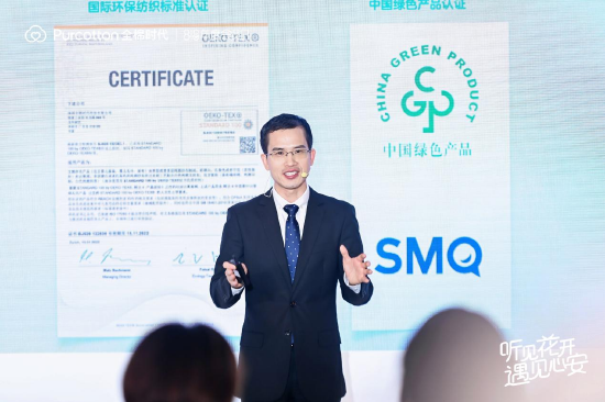 颁发仪式上,SGS知识与管理服务事业群南区和中西区总监张秋妹表示:“作为第三方认证机构,最开始对全棉时代低碳环保的了解来源于环保成绩单,但深入做各项数据选择和计算后发现,全棉时代的环保可持续 DNA在13年前就被坚定选择”。