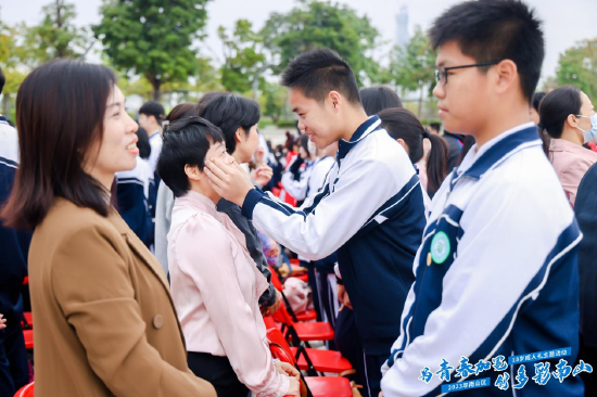 “孩子们,面对十七八岁的你们,我们有太多的祝福和期盼。”来自北京师范大学南山附属学校的家长代表表达了为人父母的心声,她希望孩子们保持健康、积极的生活态度,正视困难与挫折,学会感恩与包容,做一个从容自信、格局广阔的人。
