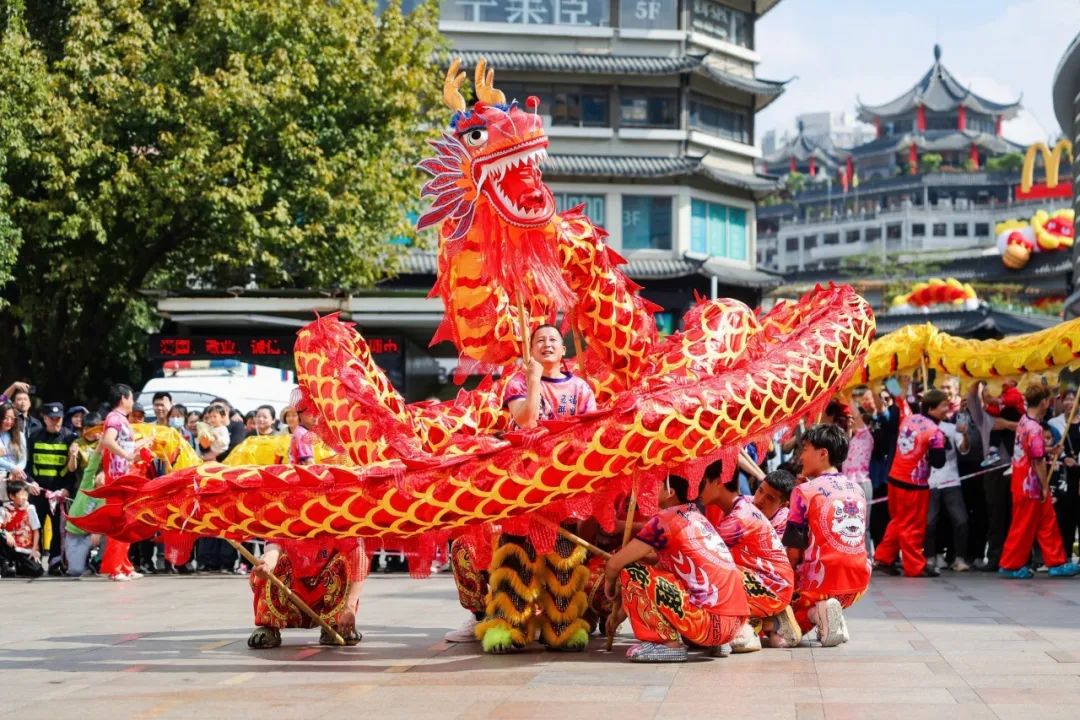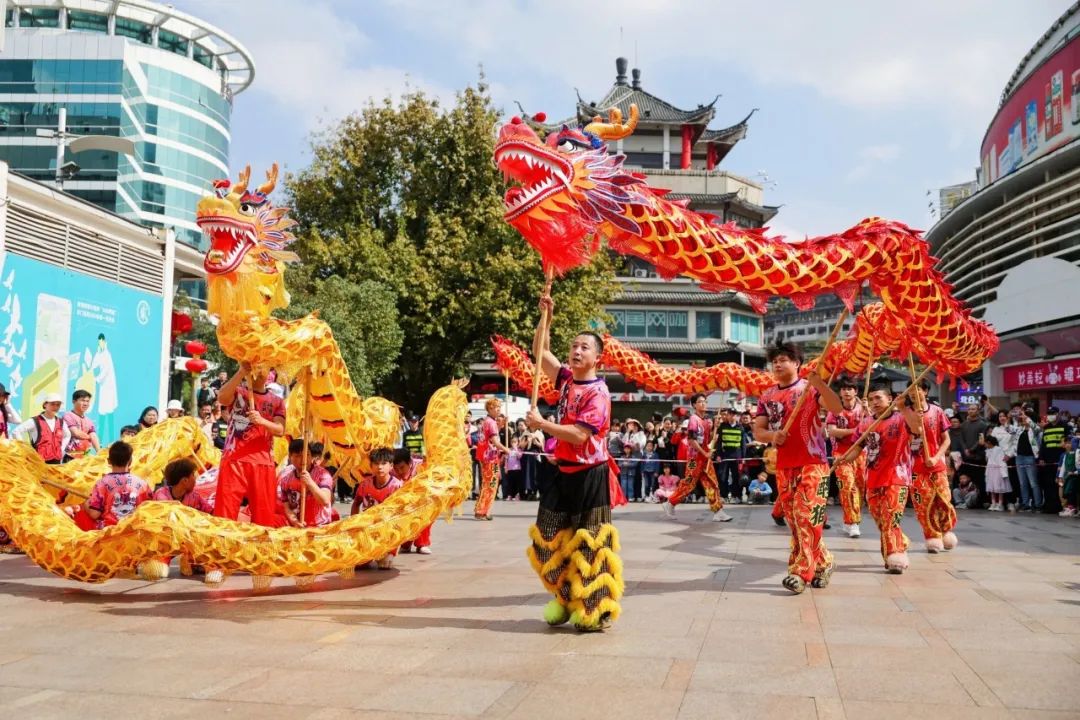 随着鼓乐伴奏,象征着喜庆吉祥的祥龙、瑞狮、麒麟“龙”重登场,为观众带来一场独具特色的传统民俗巡演。