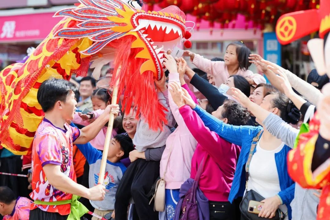 活动紧扣春节主题,以弘扬传统文化为主线,打造沉浸式民俗巡演,现场设置舞龙、舞狮,“福、禄、寿、喜、财”五吉星派福送福包,舞麒麟、英歌舞等多个沉浸式民俗表演。