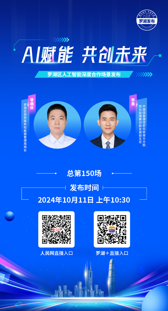 10月11日,“罗湖发布”举行“AI赋能,共创未来”人工智能深度合作场景主题发布会。发布会由罗湖区政务服务和数据管理局主持。