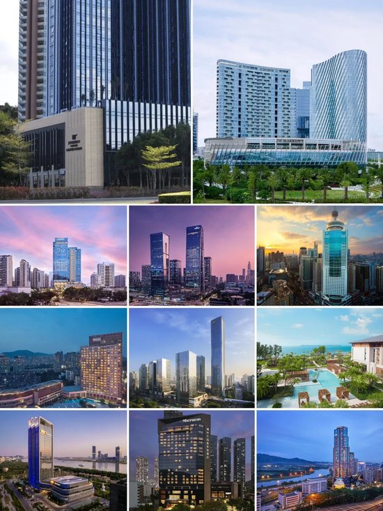 金茂深圳JW万豪酒店、深圳前海华侨城JW万豪酒店、深圳前海华侨城艾美酒店、深圳湾万丽酒店、深圳彭年万丽酒店、深圳益田威斯汀酒店、深圳中州万豪酒店、深圳佳兆业万豪酒店、广州南沙金茂万豪酒店、深圳博林天瑞喜来登酒店、深圳福朋喜来登酒店等
