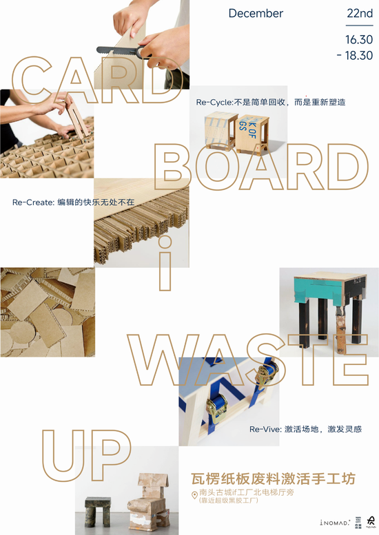 纸板的重生不仅仅停留在创作本身, “回收站”作为纸板废料的创意工厂,将完成可持续商业活动最重要的绿色闭环,让可持续不再只是口号,而是真正实现零废料。