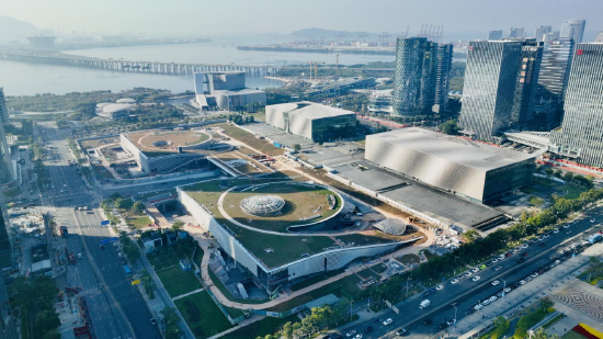 深圳书城湾区城项目位于宝安区新安街道宝安中心区海滨广场,总建筑面积约为13.1万平方米,建筑以“双玉盘”为设计理念,又被称为“湾区之眼”,是深圳“新时代重大文化设施”之一,也是粤港澳大湾区标志性公共文化设施和市重大文体惠民工程。项目建成后将为粤港澳大湾区市民提供高质量的公共文化服务,成为粤港澳大湾区地标级文化综合体、文化体验目的地。