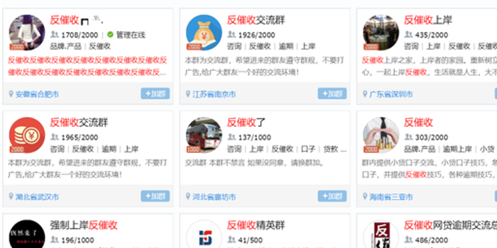 根据协会的持续跟踪发现,一些“恶意逃废债”人群目前以“反催收”名义行着有组织、有预谋的“老赖”之实。这些“恶意逃废债”人群中的很多人,发起、成立了各种形式的反催收公共聊天群,大多集中于QQ平台(如图1、2、3所示)。