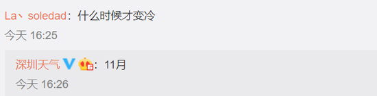评论中有网友问道,什么时候才变冷,深圳天气回复称“11月”。
