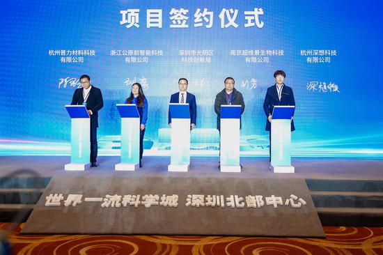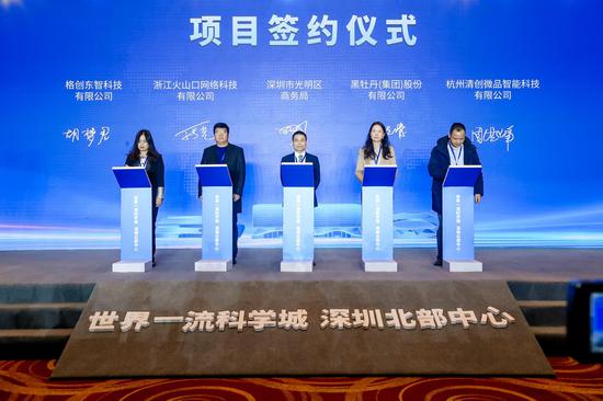 本次推介活动成效明显,黑牡丹集团股份有限公司、浙江火山口网络科技有限公司、杭州清创微品智能科技有限公司、杭州深想科技有限公司等8家企业和光明区达成合作意向,并在现场进行签约。