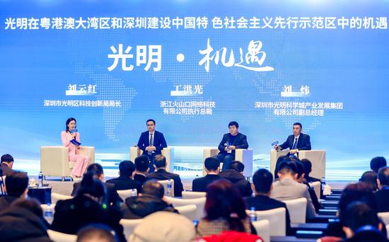 在对话交流互动环节,光明区科技创新局局长刘云红详细介绍了光明区如何打造创新创业生态体系等情况。据了解,光明在打造创新创业生态方面具有四大创新优势。