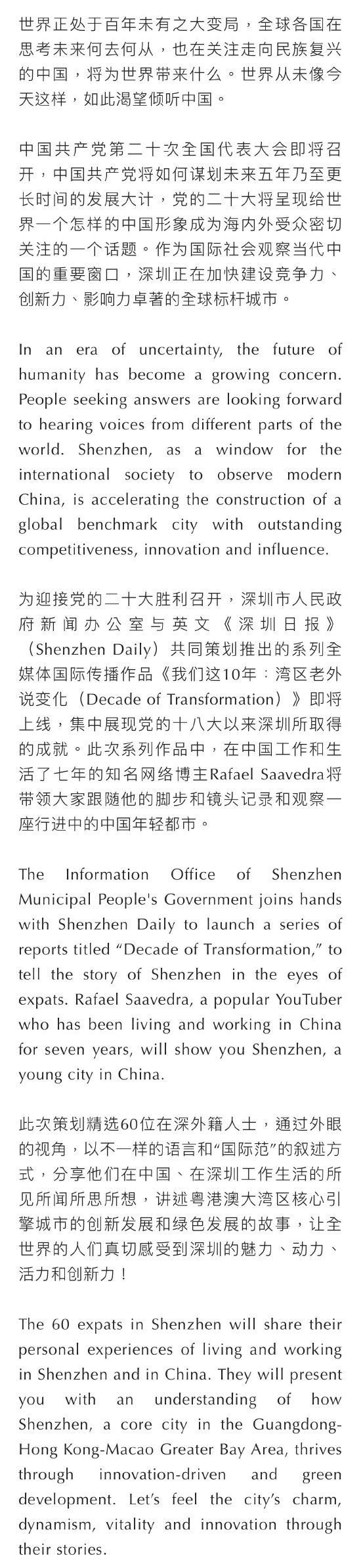 双语深圳|我们这十年:湾区老外说变化
