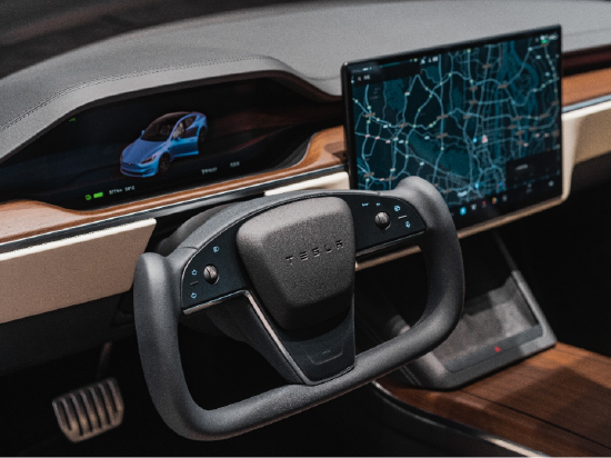 对于科技爱好者,Model S的内饰才是更具吸引力的。拉开车门,首先看到的是突破传统的Yoke方向盘,握上它就会有种开飞船的感觉,同时高度集成化的极简设计营造了更广阔的视觉空间,特有的“三九点”握持,更符合高速场景。不仅如此,全新Model S内饰的做工和用料也有很大提升,大量皮质与真碳纤维饰板的运用,让车内和车外一样更具质感和运动气息,配合Autopilot自动辅助驾驶等功能,让整车尽在掌控。