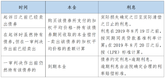 就上述损失具体应如何计算,《新规定》第26-28条仅针对集中竞价的股票做了具体的细化,但该规则是否能适用在债券上,则存在争议。