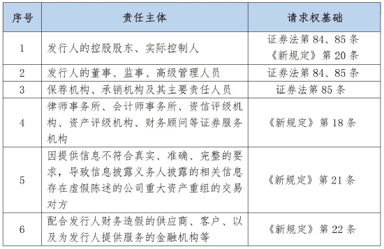 对此,《证券法》《新规定》等法律法规还明确了可能应当承担投资者损失的主体。具体包括以下内容:
