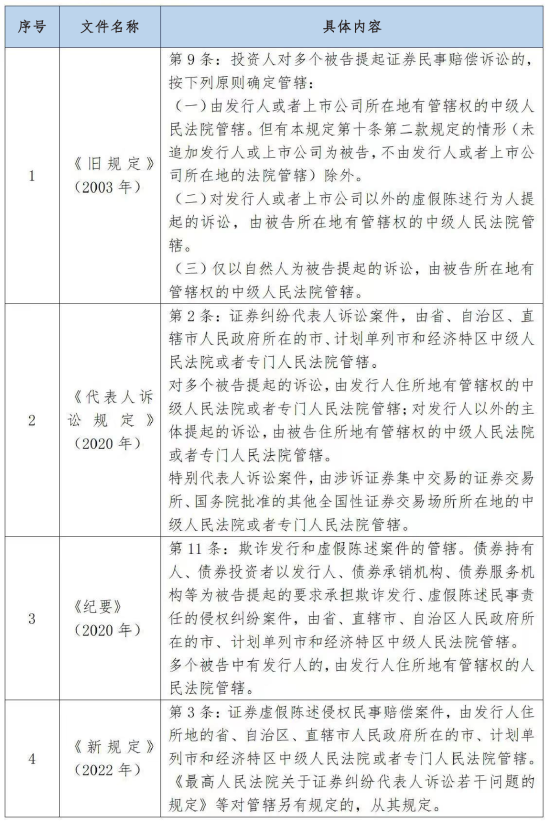 二是若涉及代表人诉讼,则区分了“有发行人为共同被告”和“没有发行人为被告”两种情形:“有发行人为共同被告”的,由发行人住所地的中级法院或专门法院管辖;“没有发行人为被告”的,则由被告住所地的中级法院或专门法院管辖。