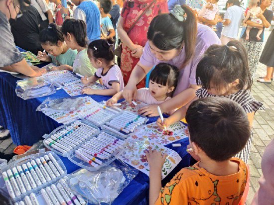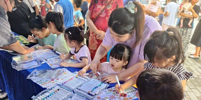 活动现场布设科普展板,并向参与活动的居民发放宣传折页,普及生态环境保护和健康知识,促进形成自觉自律的绿色低碳行为和健康生活方式。在游戏互动环节,居民热情高涨,吸引了众多小朋友参加“扇子绘画”趣味活动,小朋友们纷纷在扇子上描绘鲜艳的花卉图案,得到一把独一无二的小扇子。通过奖励机制广泛调动居民参与生态环境保护的积极性,培养良好行为习惯,防范环境健康风险。