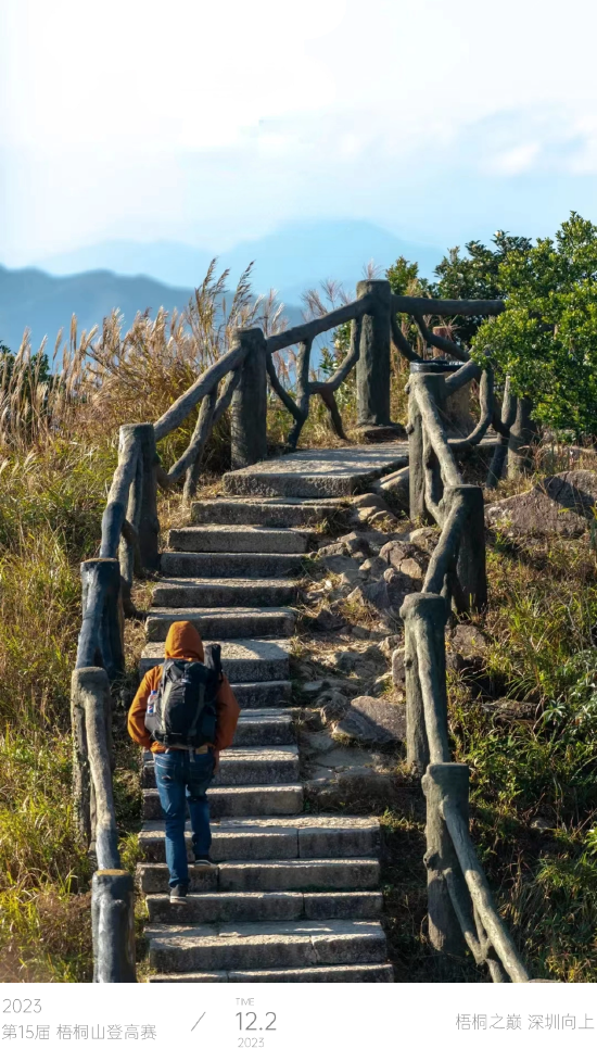 梧桐之巅,深圳向上 。2023梧桐山登高赛来啦!2023年12月2日让爱好登高的我们一起用小脚步勾勒出生活的大弧度,在时代更迭的浪潮中奋勇前行。