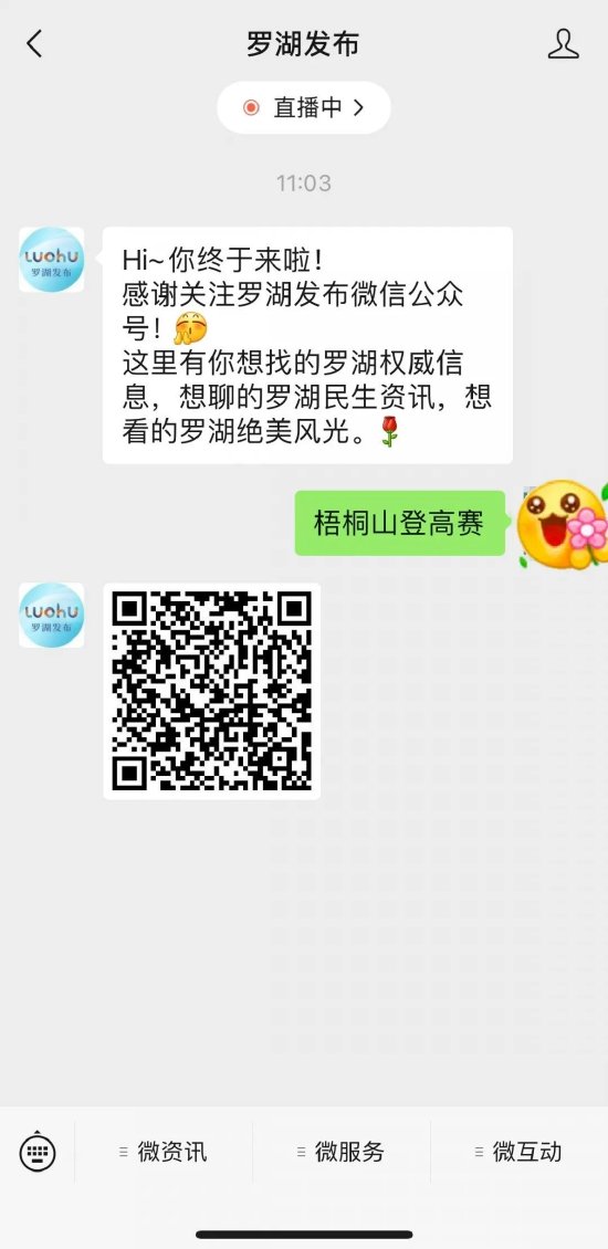 - 进入“罗湖发布”公众号,进入后台回复关键词“梧桐山登高赛”,长按识别二维码按要求填写信息即可报名。