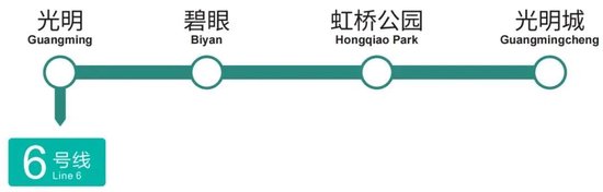 地铁6号线支线二期全长4.96公里,南起在建的13号线光明城站,终点北至既有6号线支线一期光明站,共设光明城站、虹桥公园站、碧眼站。三座地下车站采用全自动无人驾驶模式。