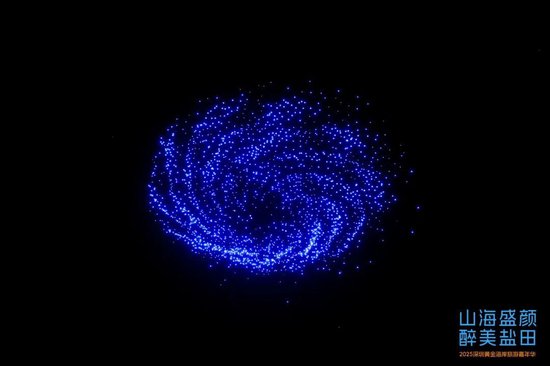 整场开幕式在无人机编队表演中达到高潮,两千架无人机在空中精准编队、默契配合,以夜空为幕、光点为笔,勾勒出一幕幕生动立体的光影图景,为市民带来一场兼具科技感与文化味的视觉盛宴,也让盐田的山海之美、产业活力与人文温度在夜色中淋漓展现。