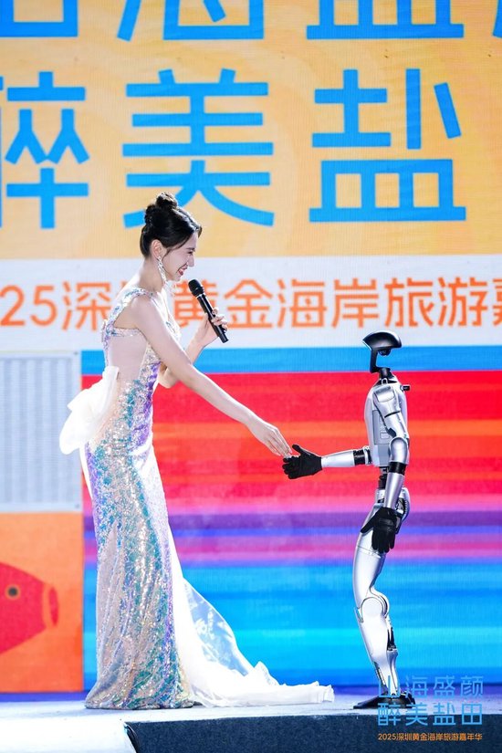 “大梅”还特别介绍了她的“家”——大梅沙机器人剧场。该剧场以赛博风格为设计基调,营造超现实沉浸式演艺空间,未来她将与众多机器人伙伴同台,呈现一系列科技与艺术深度结合的创新演出,为观众开启一段穿越现实边界的视听盛宴。