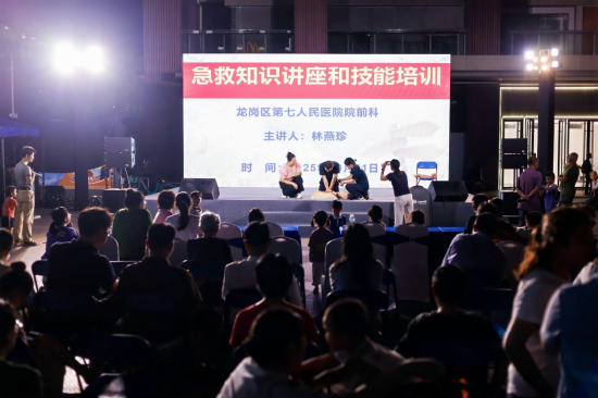 为深入贯彻落实龙岗区关于2025年国家基本公共卫生服务项目宣传月活动的部署,全面展示项目实施15年来的惠民成果,2025年10月11日晚,由龙岗七院主办的“健康促进与教育暨基本公卫服务15年主题宣传”活动在樟树布广场成功举行。本次活动创新打造“健康夜市”体验,将惠民政策与健康服务送到居民“家门口”,旨在提升居民对“龙岗家医”及免费公卫服务的知晓率与获得感。