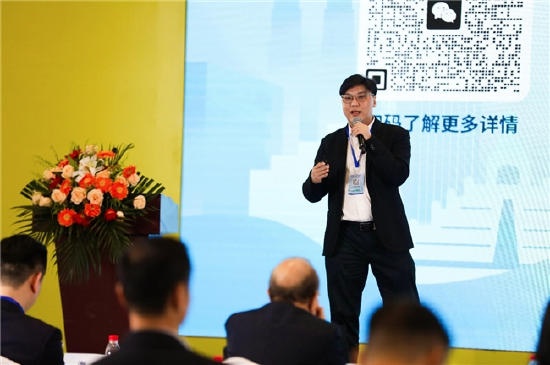 新加坡胜科集团助理副总裁佘利财分享了印尼概况,展示了胜科通过集成综合能源和水务环保技术,提供可靠、可持续运营环境的一体化、高标准园区优势,凸显了绿色、稳定园区生态对企业长期发展的重要性。