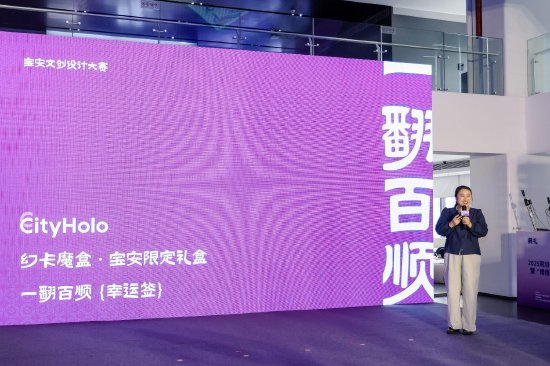 颁奖典礼上,金奖作品《幻卡魔盒・一翻百顺幸运签》的设计师在现场分享了创作心路。该作品通过3D全息投影和NFC互动技术,让用户在互动中探索宝安文化,其创意兼具趣味性与科技感。该作品非凡的创意深度、技术高度与文化温度,成为本届大赛“文化+科技”融合理念的最佳典范。