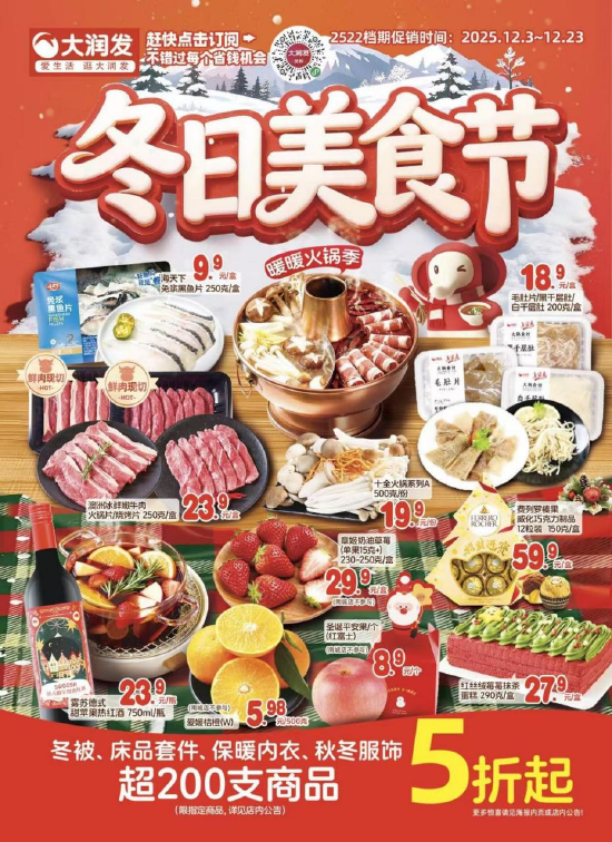 冬日美食节(民治大润发):12月3日至23日,推出系列美食促销活动。