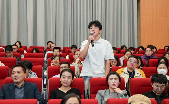 在给予师生建议时,三位院士的建言恳切而务实。贾金锋院士提到,诚信属于道德范畴,需通过强化教育引导,让坚守诚信者获得长远利益;廉洁则与制度、法律紧密相关,应进一步健全规章制度、明晰行为界限,减少模糊地带,从源头上防微杜渐、筑牢防线。林间院士指出,导师与领导干部的以身作则至关重要。导师的严谨学风能深刻影响学生的学术态度,领导干部的清廉作风则能带动整个团队的风气。顾东风院士特别对从事科教行政管理人员提出建议,手中掌握权力的人员必须对岗位和权力心存敬畏,要用制度管人、管事,确保“手莫伸”。他进一步阐释了与林间院士的共同观点,指出保持廉洁诚信的最大好处之一便是“每天能够睡好觉”,唯有内心坦荡,方能健康常伴。互动环节中,与会师生和嘉宾踊跃提问,围绕实验室研究生廉洁诚信要求、AI时代的学术规范与诚信边界、家庭教育中如何培养孩子的诚信品格等话题与院士们进行了深入交流。院士们耐心解答,现场气氛热烈。