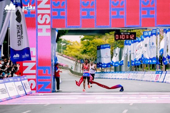 最终经过激烈的角逐,男子组埃塞俄比亚选手ABDULJELIL ABDULWOKIL FARIS以1小时1分13秒获得第一名,一举打破赛会纪录!埃塞俄比亚选手AWEL MUKTAR EDRIS以1小时1分15秒获得第二名,肯尼亚选手MAYWA SIMON以1小时1分21秒获得第三名。