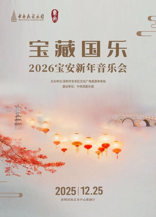 关注2025年12月25日,中央民族乐团“宝藏国乐——2026宝安新年音乐会”即将在深圳滨海艺术中心奏响。