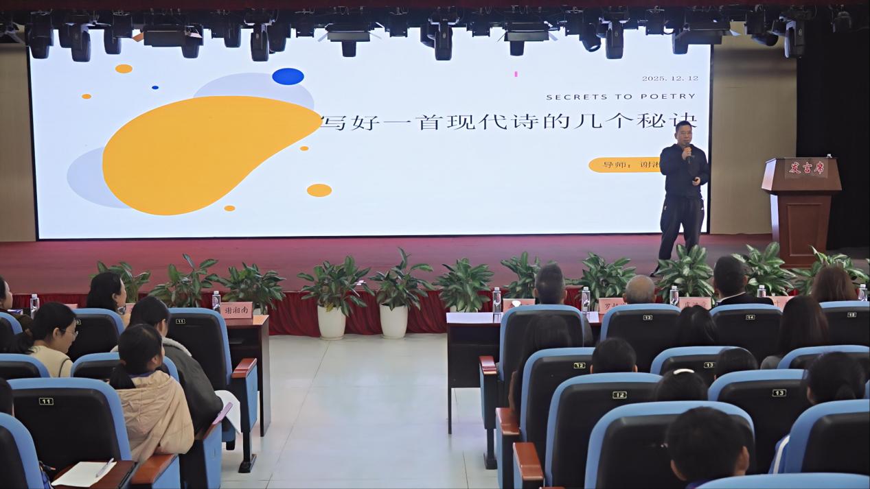 当千年的诗韵流淌进青青校园,当跃动的童心与凝练的意象相遇,12月25日,一场以诗歌为媒的成长对话在深圳市梧桐小学悠然开启。本次活动特邀中国作家协会会员、深圳市作家协会副主席、罗湖区作家协会主席、著名诗人谢湘南老师走进校园,为师生带来题为《写好一首现代诗的几个秘诀》的专题讲座,与师生共赴一场期待已久的诗意之约。