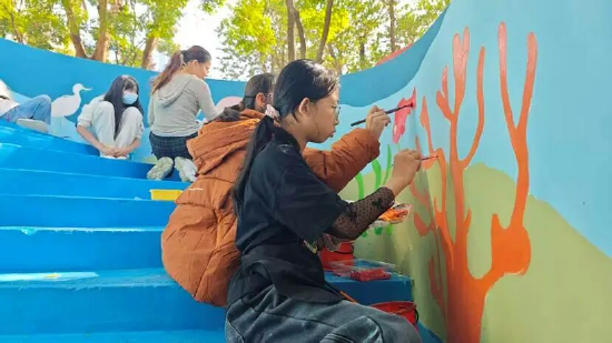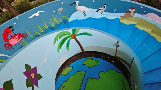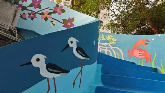 关注新年伊始,深圳福田区南园街道滨江社区多了一处网红打卡点——社区公园与廊桥连接处的旋转楼梯旁,一面60㎡的生态墙绘正式亮相。该生态墙绘以陆地、海洋和天空为背景,黑脸琵鹭、中华白海豚、红树林等20余种深圳本土动植物的动漫形象跃然墙上。值得一提的是,这面墙的创作者是社区里10岁到72岁的居民们。这不仅是一份特别的新年礼物,更是社区居民共同打造的“场所记忆”,让大家在自家门口就能遇见自然之美。