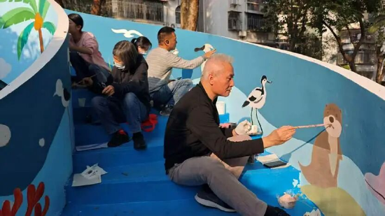 网红打卡点现身深圳老社区 居民联手创作生态墙绘