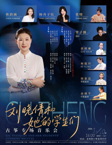 1月10日,由深圳红立方龙岗青少年宫、刘晓倩古筝教研团队联合主办的“刘晓倩和她的学生们”古筝专场音乐会,在龙岗青少年宫风华厅圆满举办。这场民乐演出以古筝艺术为核心,既是传承中华优秀传统文化的视听盛宴,也是深圳红立方龙岗青少年宫推动艺术美育普及、搭建青少年艺术展示平台的重要实践。