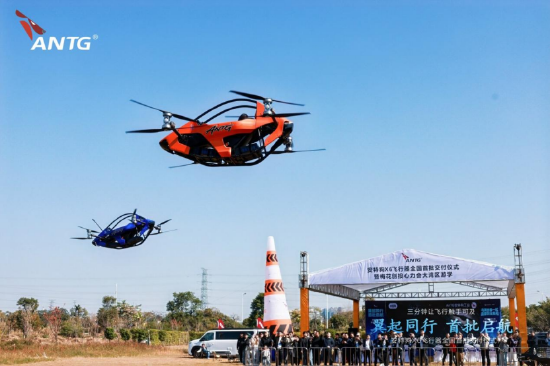 在梅花创投创始合伙人吴世春等嘉宾的共同见证下,antg-X6全国首批交付仪式正式启动。林志豪与吴世春共同向深度空域及深城交低空授牌,标志antg-X6正式投入市场运营。现场还进行了antg-X6编队飞行演示,展现其稳定性能与协同飞行能力。