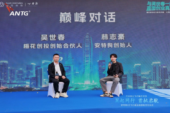 在接下来的巅峰对话环节,林志豪与吴世春就eVTOL行业趋势、商业化路径及投资逻辑展开对谈。吴世春指出:“低空经济是未来科技与出行融合的重要赛道,安特狗在单人飞行器领域的突破,为行业提供了可行的商业化样本。”