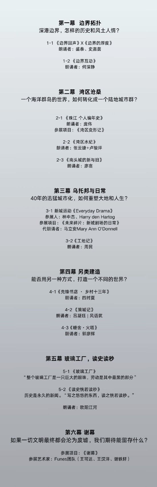 本次演出由总策展人朱涛领衔,约二十位参展艺术家陆续登场,将以诗朗诵的形式,伴以音乐和影像(而非沉闷PPT),诠释展品理念、分享创作心路。