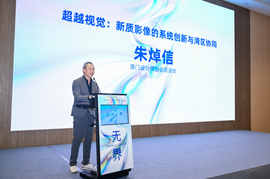 澳门设计师协会前会长朱焯信发表《超越视觉:新质影像的系统创新与湾区协同》主题演讲,提及应充分发挥湾区在设计资源、科技研发与产业制造方面的互补优势,通过跨区域、跨学科合作机制,推动新质影像在内容生产、技术应用与产业转化等层面形成协同效应。