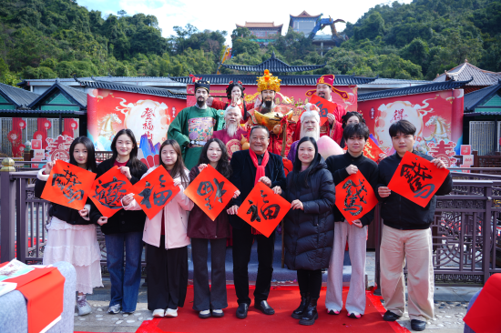 除了挥春送福等活动,东莞观音山还推出了“五福贺新春”系列活动,该活动将贯穿整个春节假期,直至元宵佳节,为市民游客打造丰富的新春出游体验,让福山的福气陪伴市民度过整个新春。活动现场,“福禄寿喜财”五福NPC天团惊喜亮相,福星手持观音山定制马年福字贴,免费赠予游客;禄星持如意现身,与游客互动送升职加薪的美好祝愿;寿星公捧大寿桃,为大家送上健康长寿的祝福;喜神为游客系上吉祥红绳,寓意幸福美满;财神抱金元宝与市民合影互动,讨个财源广进的好彩头。五福天团的沉浸式互动,让游客在游玩中感受传统年俗的魅力,也让观音山的新春氛围持续升温。