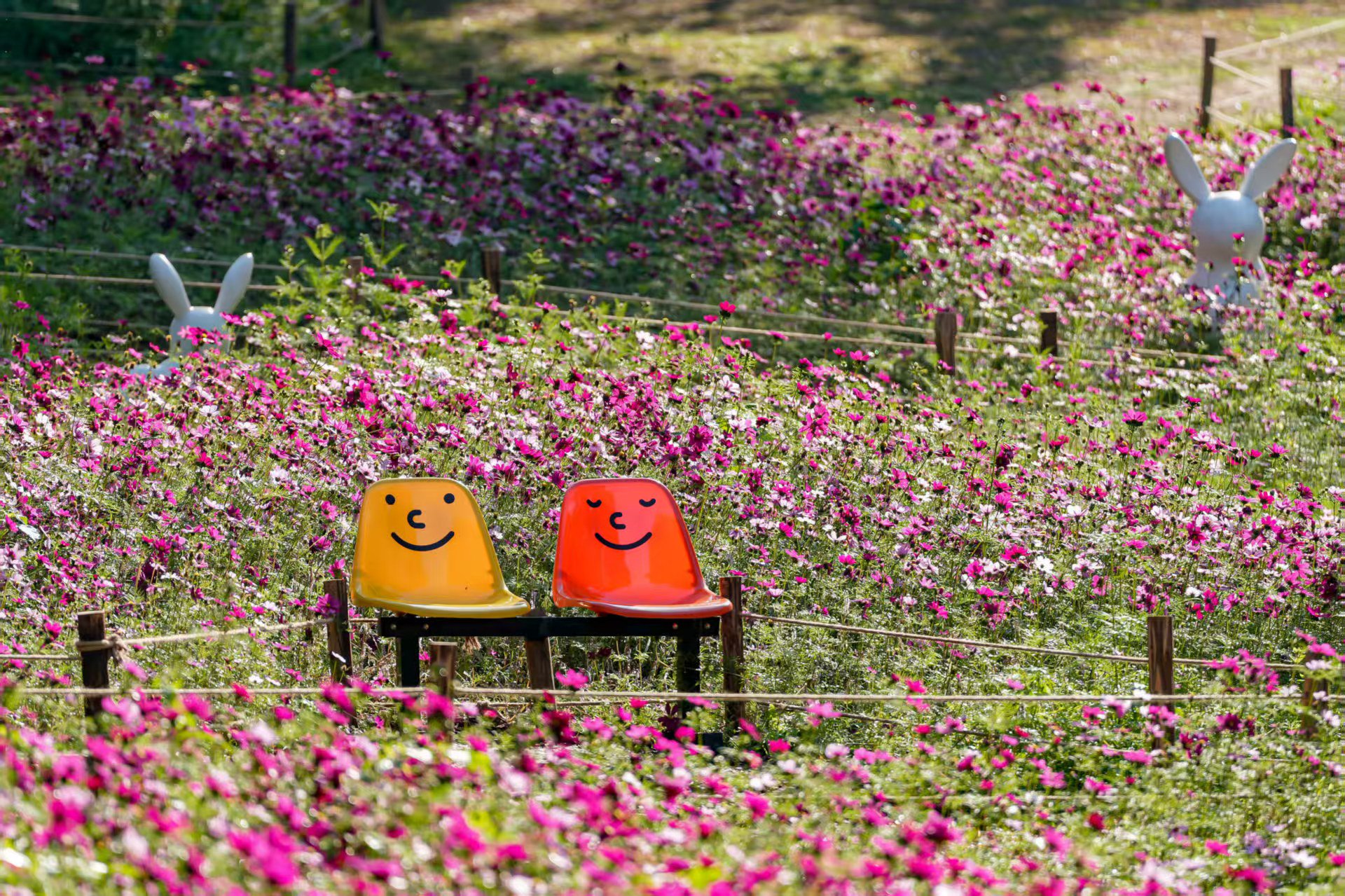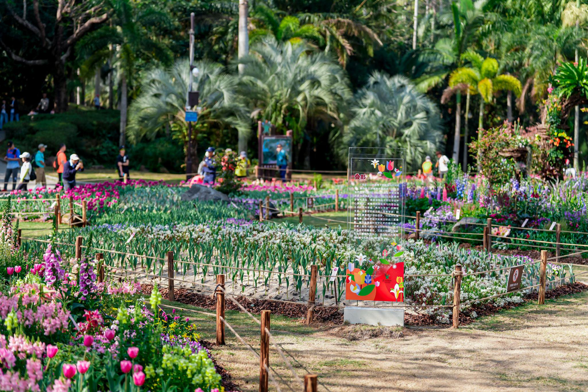 2026仙湖植物园春花节核心区域为湖区草坪和菩提树草坪。在湖区草坪,以春节“顶流”郁金香为主题花,搭配朱顶红、洋水仙、百合和风信子等180余种球根花卉,采用条带、块状、混合、套种等不同的种植方式,通过巧妙结合地形塑造出丰富空间,与50余种应节花草交相辉映,营造出“晨熹”、“叠影”和“汐屿”等节点,呈现出现代时尚又自然野趣的春日意境,让每一处皆是“郁”见繁花的独特惊喜。在菩提树草坪,近3000㎡的阿波罗、奏鸣曲等10余种波斯菊品种如期绽放,色彩交织、花影重叠,宛如大自然挥洒而成的调色板,绘就出新春的诗意画卷。