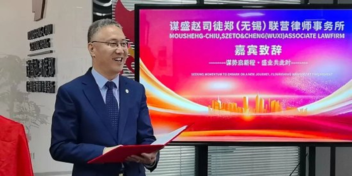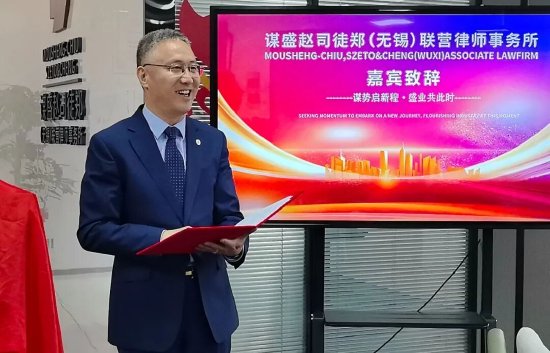关注春风送暖,万象更新。日前,谋盛赵司徒郑(无锡)联营律师事务所正式运营。无锡市律师协会会长宋毅出席活动并致辞,市律师协会监事长、市涉外法律服务中心主任陈易平,协会相关领导及联营所负责人等共同参加活动。
