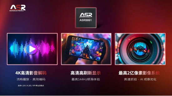 在显示与视频处理方面,ASR8861支持4K视频解码,并可驱动FHD+ 144 Hz 及横屏2.5K 90 Hz高刷新率显示,为影音娱乐、游戏及短视频应用提供流畅顺滑的视觉体验。配合高性能Audio Codec,平台在影像、显示与音频等核心体验维度实现全面提升。