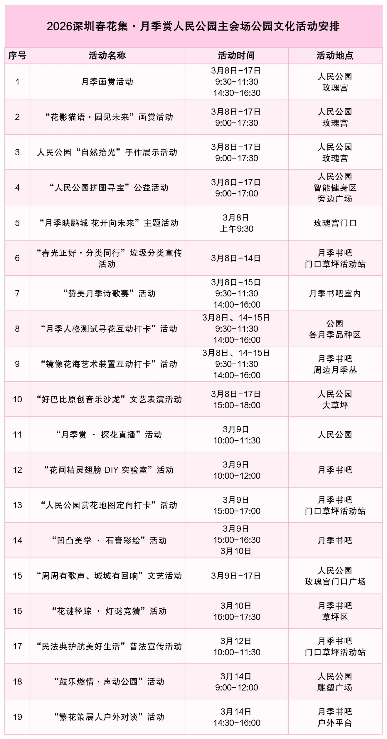 月季赏期间,人民公园精心策划十九项形式多样的文化活动,涵盖艺术鉴赏、趣味互动、科普文艺、文化创作等多个领域,让市民在赏花之余,尽享游园之乐。