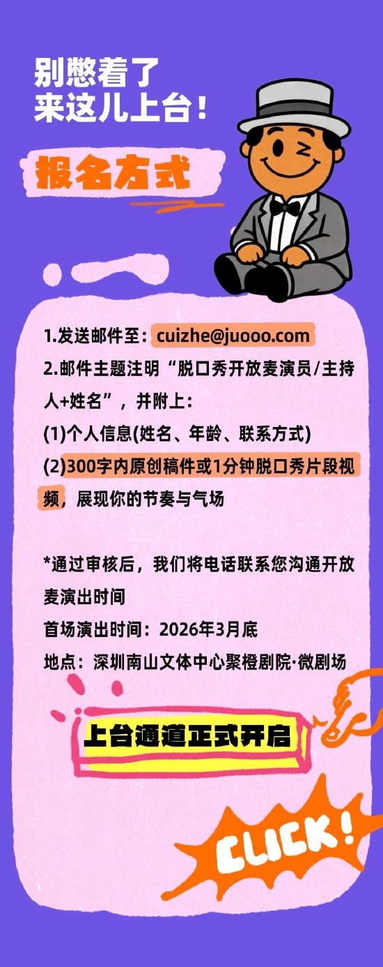 演员+主持人招募|舞台和麦克风准备就绪,聚笑场开放麦等你来!