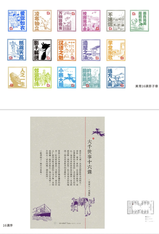 美育十六课,遴选于民国教科书国文、音乐、美术、常识、公民课,凝聚先生的用心、今昔的时势,堪为百年教育的暗夜繁星,戈壁甘泉。美是什么?被四季图文滋润的人与万物,柔和而刚健,微茫亦恢弘。百年闪耀,相逢此间。