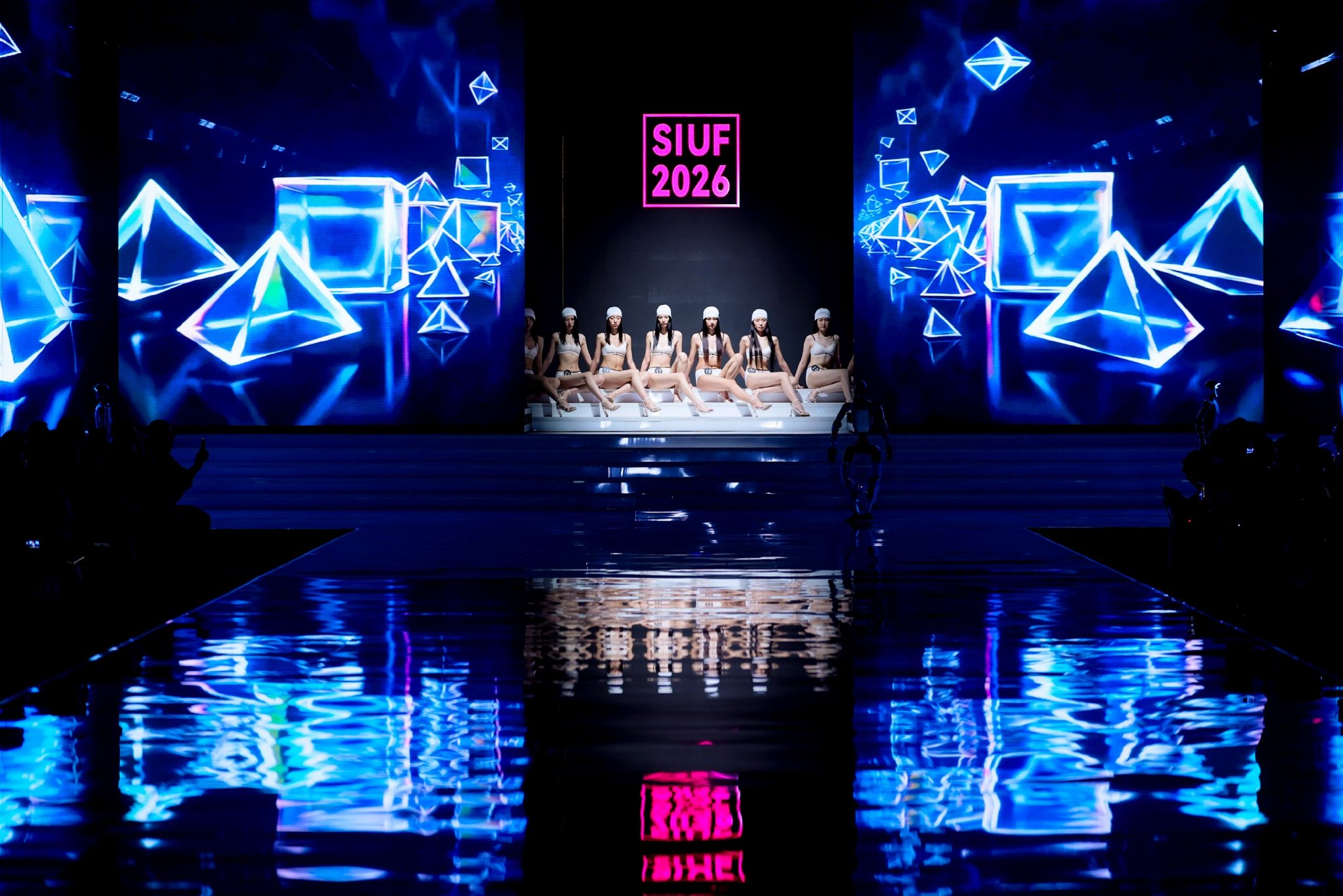 本季总决赛在舞台呈现上进一步强化了“自由”的叙事主线。整场赛事由暖场视频、主题开场、选手亮相拉开序幕,随后依次进入“运动活力开场”“斑斓之间”“形者无言”“黑色结构”四大展示篇章,并穿插“超模看深圳”主题短片及机器人同台环节,让总决赛不仅停留在T台内部,而是与城市、人文和未来感形成更立体的联动。