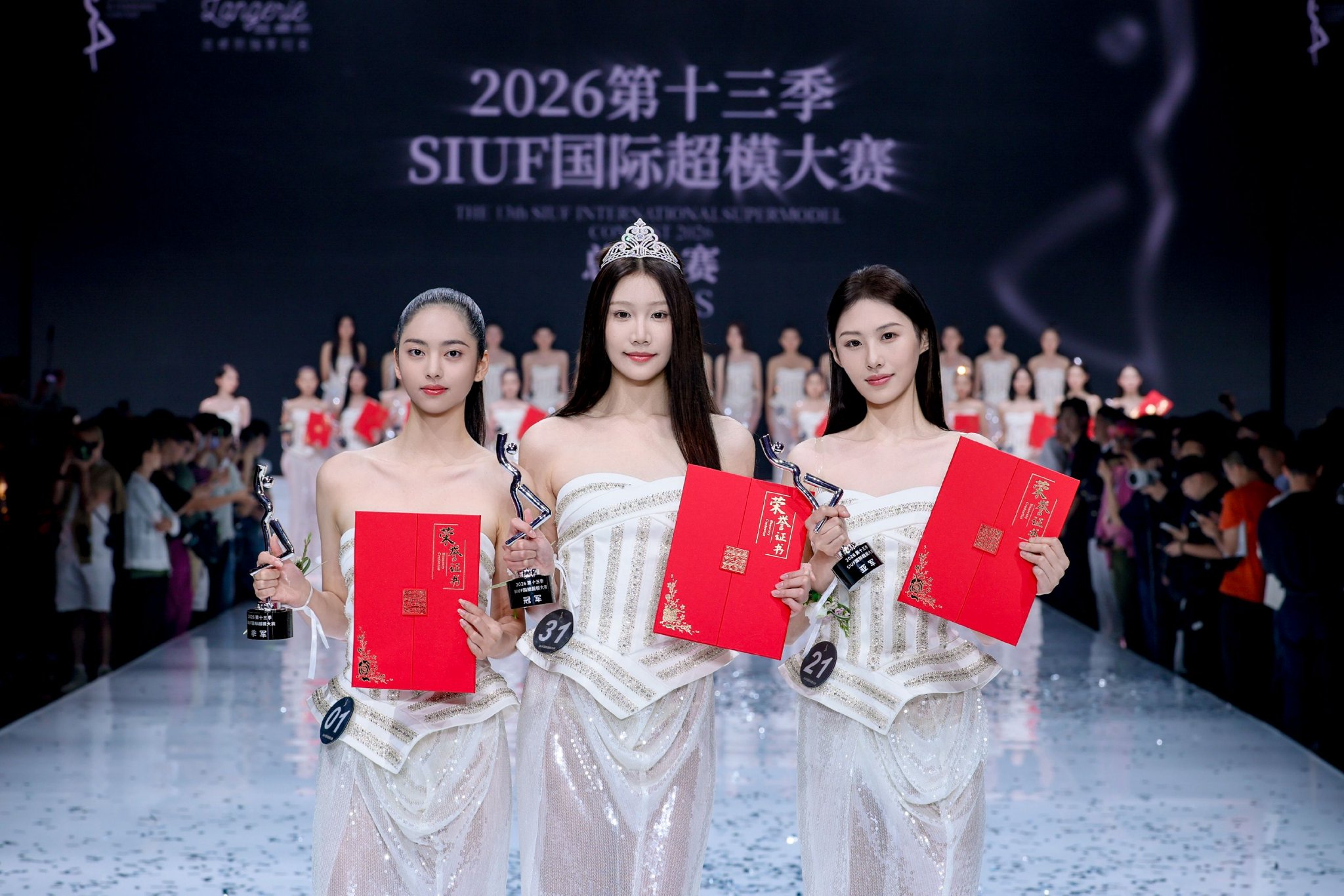 活动当晚,随着各轮展示推进,最具人气奖、最佳上镜奖、最佳表现奖、最佳T台奖,以及十佳超模、季军、亚军、冠军等荣誉逐一揭晓。最终,31号选手王涵滢凭借其出色的综合表现摘得桂冠,21号选手孙艺华获得亚军,1号选手龚子祺荣获季军。第十二季SIUF国际超模大赛冠军姚曼茹现场为本季冠军授冠,也让整场赛事在荣耀与传承之中完成收束。站在舞台中央的,不只是获奖者,更是新一代女性对“自由、自信、时尚”三者关系的重新诠释。