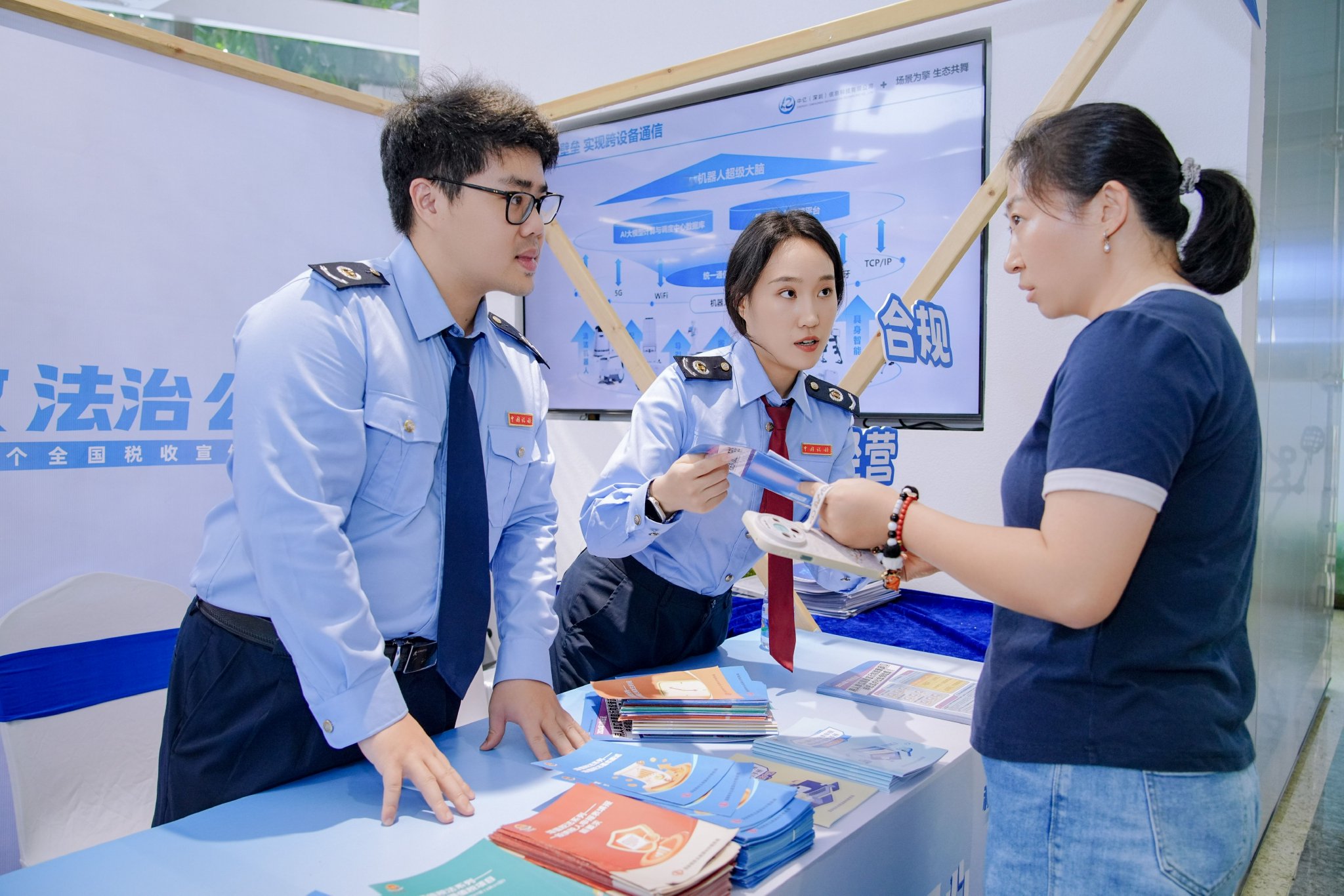 酷炫的科技互动之外,接地气的税费服务同样人气高涨。活动现场的税收综合服务摊位前人头攒动,社保费缴纳、增值税法解读、个人所得税汇算、小微企业税费支持等各类政策宣传折页整齐摆放,一目了然。税务干部化身“贴心顾问”,针对市民关心的各类税费问题进行“一对一”答疑解惑,派发税费政策宣传手册,还主动走入人群,与市民沟通交流,了解他们在办税过程中的实际困惑,提供针对性指引。